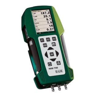 EiUK Rasi 800, certifié MCERTS, est un analyseur portable de combustion et d'émissions capable de contrôler jusqu'à 9 gaz simultanément